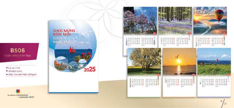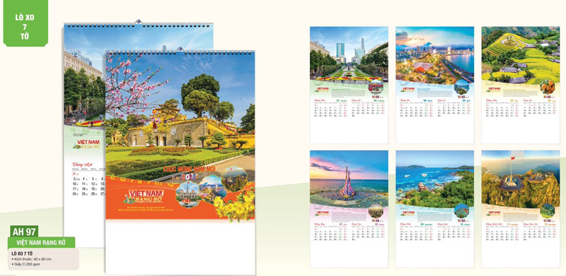 - Trong đó có 6 tờ lịch: Chính là thể hiện 2 tháng trong năm, tổng cộng 12 tháng. Với tờ lịch này để được thiết kế với những hình ảnh phong cảnh và nghệ thuật.