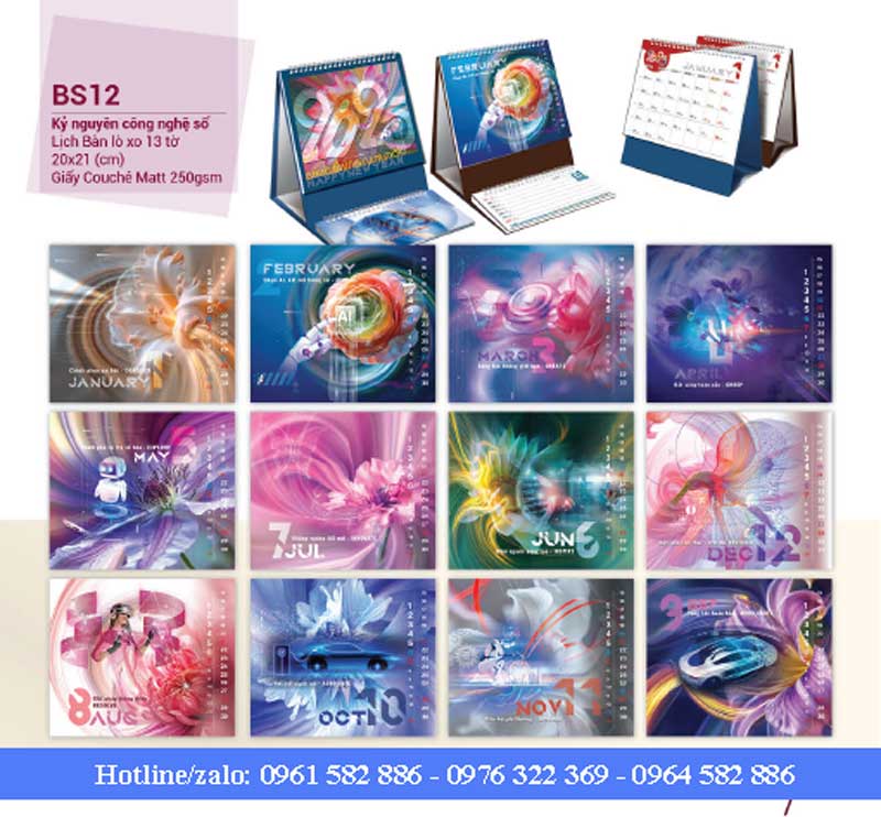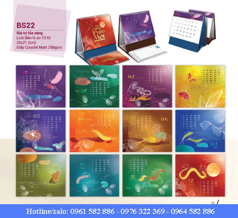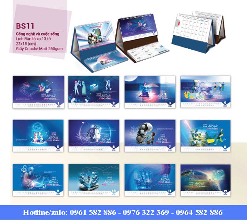 - Lịch để bàn: Đây là một loại lịch để bạn có thể dùng được tại văn phòng làm việc, bởi vậy mà rất nhiều công ty lựa chọn chuyên nghiệp giúp khách hàng luôn nhớ tới doanh nghiệp của bạn trong một năm qua .